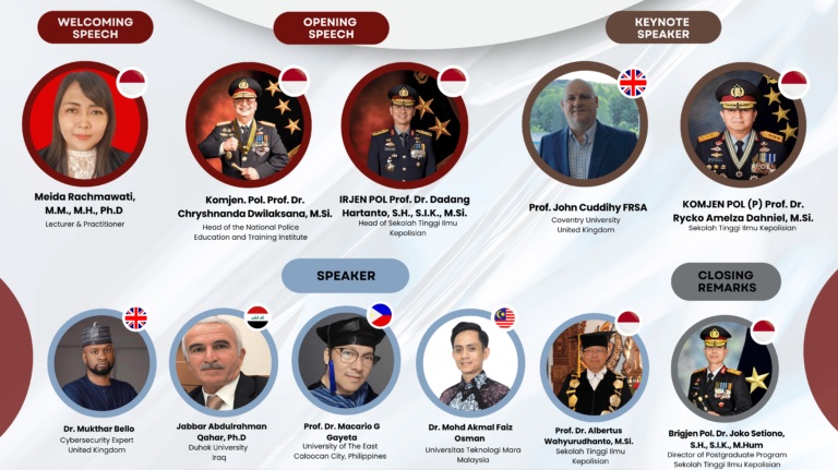 Selanjutnya, keynote speech disampaikan oleh tokoh-tokoh penting di bidang kepolisian dan akademik internasional, yaitu: