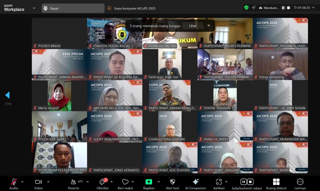 Banjarmasin, 15 Juli 2025 – Dalam upaya mendukung peningkatan kapasitas dan wawasan global di bidang kepolisian, Itwasda Polda Kalimantan Selatan turut berpartisipasi dalam Annual International Conference on Police Studies (AICoPS) tahun 2025 yang digelar secara daring pada Selasa, 15 Juli 2025, pukul 08.00–16.00 WITA. Kegiatan ini diikuti oleh Aipda Ahmad Ridha, S.H. dari ruang kerja staf Itwasda Polda Kalsel.